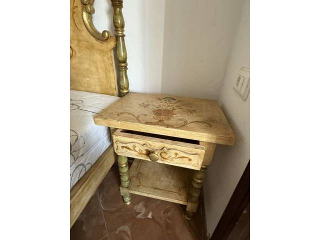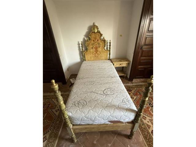 Antigua cama mallorquina maciza con mesita de noche a juego