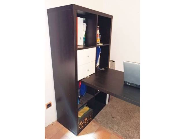 - Escritorio - Estantería - combinación ancho 76 cm x alto 1,47 m (altura de la mesa 74 cm) x fondo 39 cm (con mesa 1,60 m). El armario tiene 2 cajones y 7 compartimentos.