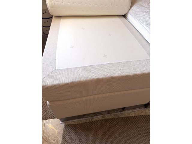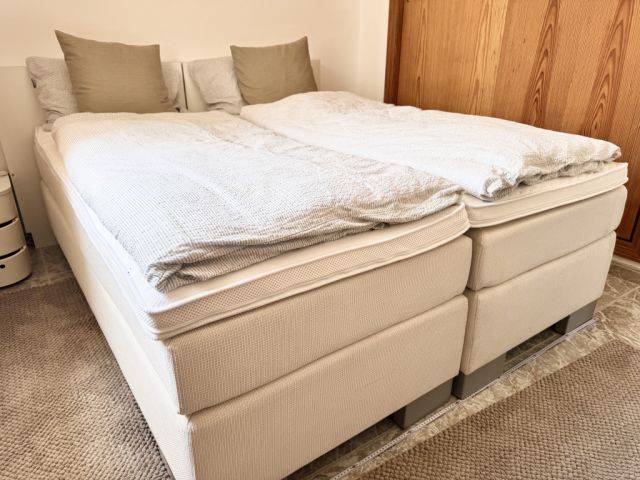 "Tan bueno como una cama de somier nueva" es de Alemania y cuesta NP 3500.-. Consta de dos camas individuales de 80x200 que he juntado o podría montar por separado. No hay cabecero, puedes diseñarlo tú mismo. Los toppers también son nuevos. Solo se usó 4 veces. Me gustaría tener una oferta justa, pero estoy tranquilo con el precio😃 de compra. Recogida en Cala Mendia cerca de Porto Cristo