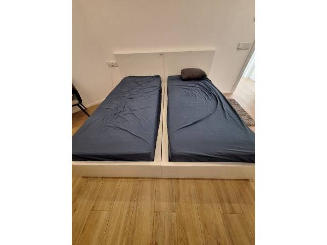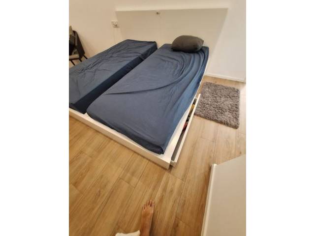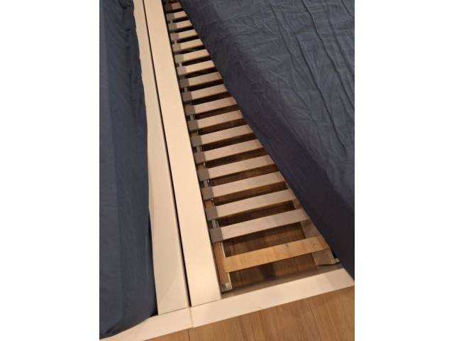 2 camas individuales con somier de lamas y colchón, blancas, apenas usadas. Con cajones de almacenamiento. Solo recogida en Santa Ponsa.