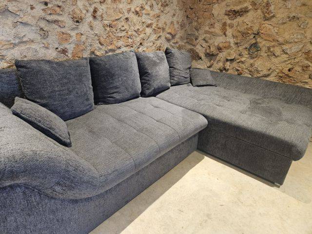 Sofá cama XXL con chaise longue y arcón de almacenamiento.