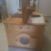 jugable por ambos lados con mucho espacio de almacenamiento, placa, horno, frigorífico, fregadero y lavadora en madera maciza de haya. Falta el cubo del fregadero, pero se puede reemplazar fácilmente.
