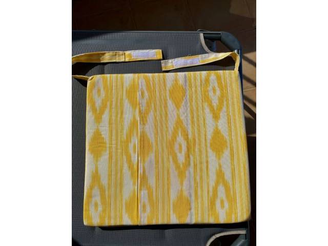 8 cojines de asiento nuevos, amarillos/blancos, cosidos a mano, con velcro, etc.