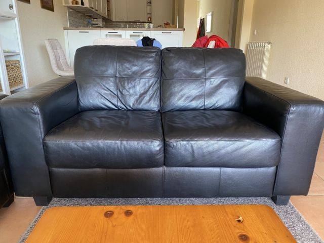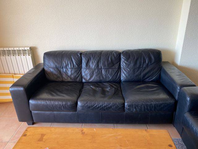 Conjunto de sofá de piel genuina de buena calidad disponible para recogida por el comprador.