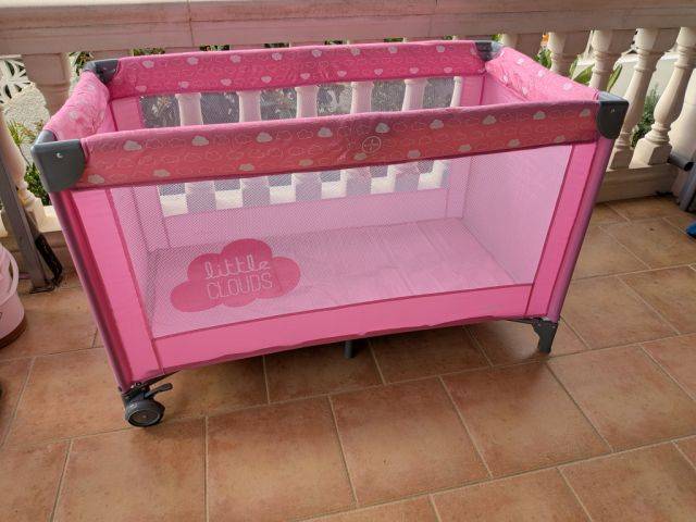 Cuna de viaje nueva sin usar. Dimensiones: Largo 126 cm. Alto 79 cm. Ancho 66 cm. Montaje/desmontaje muy sencillo. Ver, comprar y recoger en Cala Pi cerca de Llucmajor. No hay envío. Pago en efectivo al recoger.