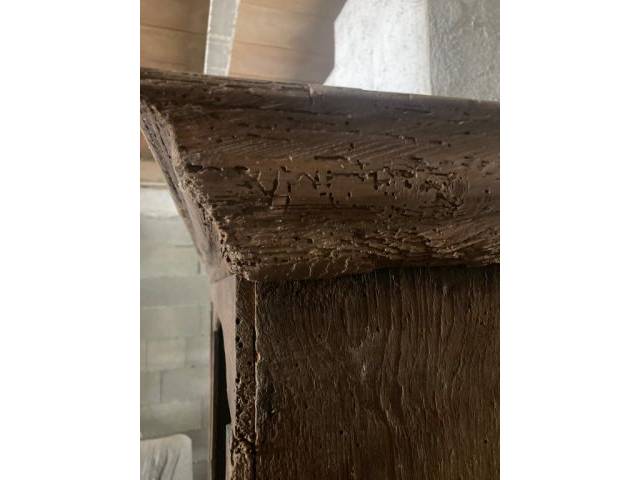 Estante de gabinete antiguo con agujeros de gusano sin gusanos