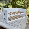 Vendo dos estantes decorativos para vino con capacidad total para 10 botellas. De madera natural y lacado blanco mate. Aprox. 50x30x13/26 cm.