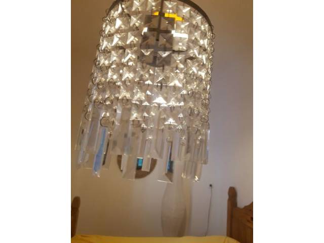 Vendo una hermosa lámpara de araña de cristal, hace una luz extraordinaria con un hermoso juego de luces / sombras, bien conservada, dimensiones: aprox. 52 cm de altura total, aprox. 18 cm de diámetro. Recogida en Portocolom, posiblemente posible devolución