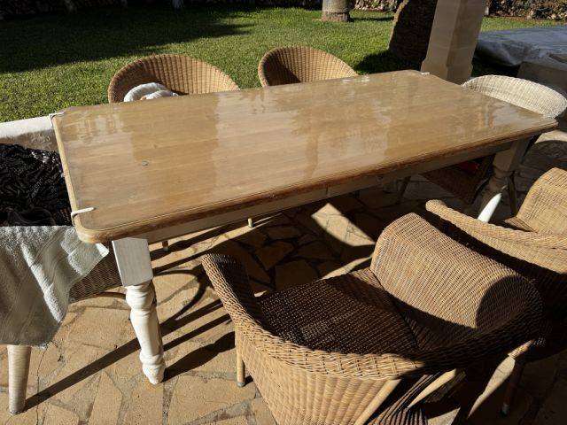 En venta hay una hermosa mesa blanca de madera con un cajón en buen estado. La superficie de madera siempre estuvo cubierta con una protección, por lo tanto sin manchas.