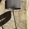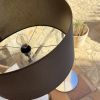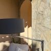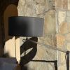 Lámpara de pie ajustable con pantalla de tela negra y base metálica