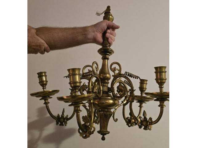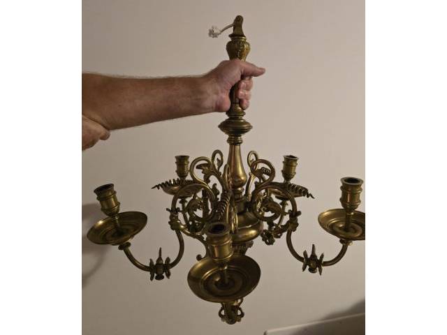 hermosa lámpara antigua maciza de latón. Reinstallada eléctricamente por un profesional. 5 bombillas.