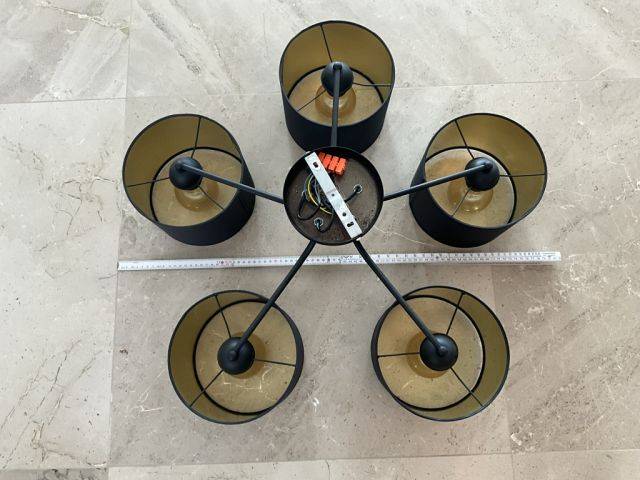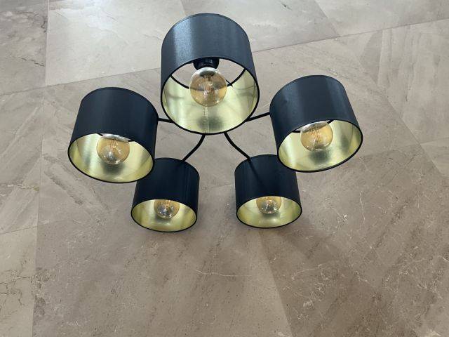 1 lámpara de techo de cinco luces, negra por fuera y dorada por dentro