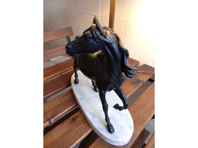 Lámpara decorativa de bronce caballo – Lámpara de mesa sobre base de mármol de Carrara -