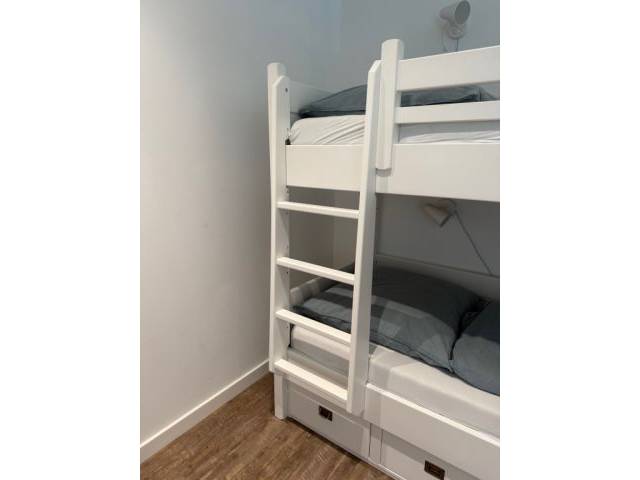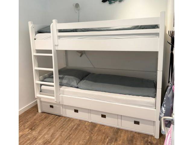 Vendemos aquí una litera de muy alta calidad en color blanco. La cama tiene aprox. 3 años y se ha usado muy poco, por lo que está en muy buen estado. El precio nuevo de la cama sin colchones fue de 1800 €. Vendemos la cama incluyendo dos colchones de alta calidad Bett1.de en las medidas 90x200cm. La cama puede desmontarse y recogerse en Costa de los Pinos previo acuerdo.