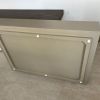 Largo 120 cm (sobre de cristal 100 cm), ancho 68 cm y altura del sobre de cristal 29 cm, así como altura del cuerpo de madera 16 cm