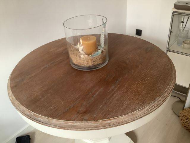 Mesa de comedor redonda de madera, lavado en blanco!