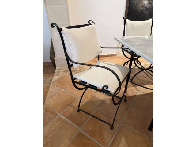 Vendo mi mesa de comedor con tablero de mármol y estructura de hierro, además de 6 sillas a juego