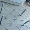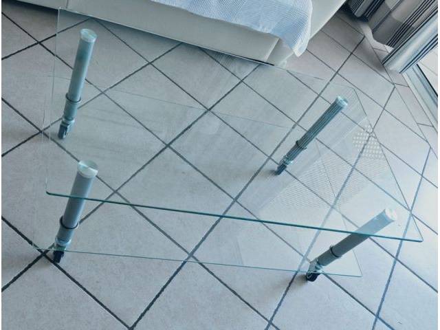 Elegante mesa de centro de cristal o similar sobre ruedas.