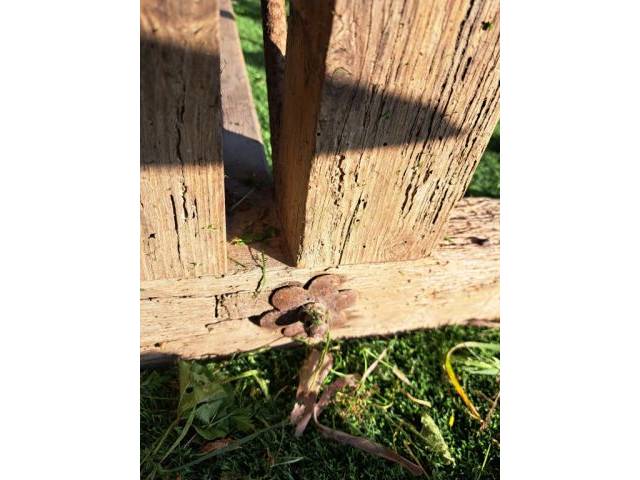 Mesa de madera antigua, muy rústica. Una gran pieza decorativa para una tienda o estilo finca. Debido a su edad, ya no :) apto para el baile de mesa. También para ser utilizado para un proyecto de resina epoxi. Dimensiones: 200x85cm + altura 76cm. Se encuentra cerca de Paguera.