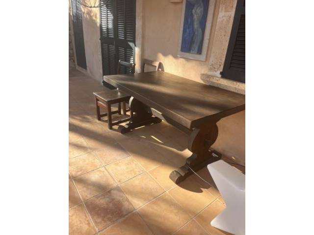La mesa tuvo que ser repintada / barnizada... Es un atractivo visual y ya no está disponible en la calidad y la forma.