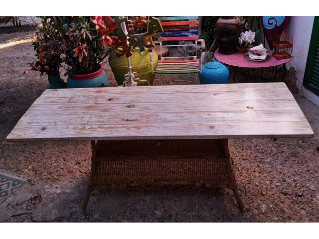 ¡Una mesa como un ONS, algo así sólo lo consigues una vez en la vida! Mesa de comedor decorativa 190 x 76 x 72 An x F x Al cm para uso exterior/interior, teñida/vintage blanqueada profesionalmente sobre madera maciza, horas de trabajo, no solo una mesa, casi arte, 300 € móvil 659 637 788 (¡Todos los transportes/traslados pueden realizarse!!)