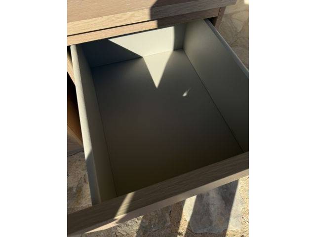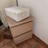 Las dimensiones son 40x55 cm y ofrecen 2 cajones cada uno con mucho espacio de almacenamiento y encajan perfectamente con la cama MALM del mismo nombre. Un postre tenía un ligero daño por agua en el estante (ver imagen) pero por lo demás como nuevo. El otro está en perfectas condiciones