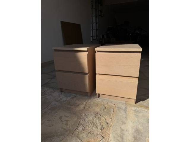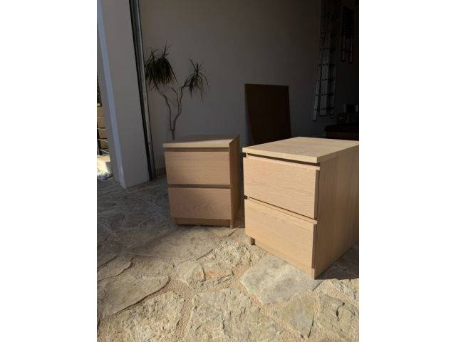 Vende 2 mesitas de noche de la serie IKEA MALM en color roble esmaltado blanco.