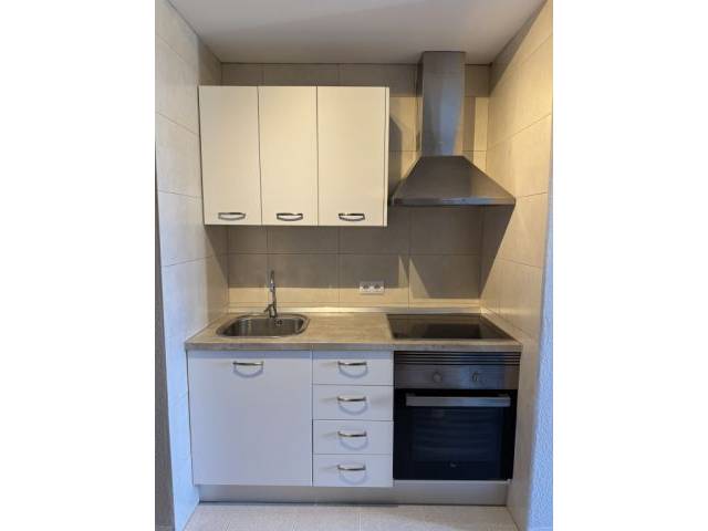 Compuesto por un mueble bajo con puerta abatible, un mueble con cajones (cajones sobre guías incl. organizador de cubiertos) y cocina con 4 placas vitrocerámicas. Bonita encimera. Mueble alto de 3 puertas y campana extractora con iluminación. Todo en buen estado de funcionamiento. Incluye fregadero con grifo.