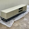 Vendo un mueble para TV/lowboard de 2,10 m de largo. El color es beige/taupe. Las medidas son 210x42x50 cm. El material del mueble es madera de mango lacada y la estructura es de metal negro. El lowboard es nuevo (precio de compra 599€) con pequeños defectos de manufactura. El mueble para TV se puede recoger en Port de Pollenca.
