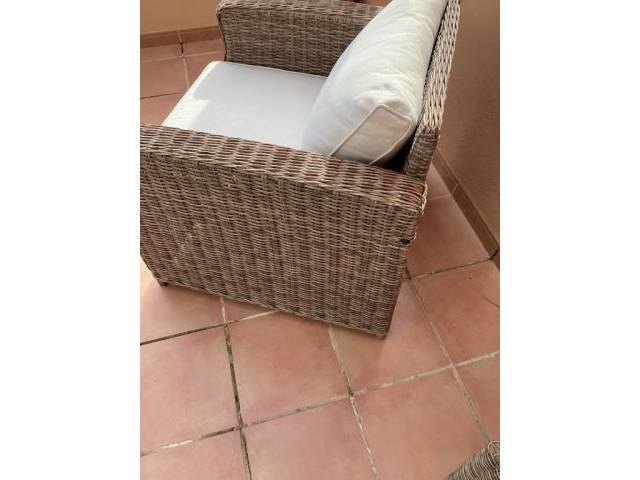 Vendemos nuestras sillas de terraza (2) con 2 mesas y un reposapiés incluido con cojines.
