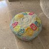 1 cojín redondo pequeño para asiento o pie, colorido, hecho de rafia y cuero