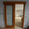 Esta puerta corredera de madera de alta calidad combina diseño moderno con elegancia funcional y se encuentra en un estado excelente, como nueva.