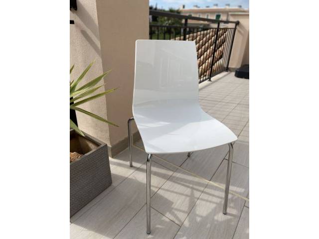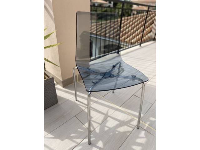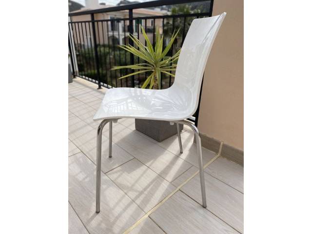 Vendo 4 sillas de comedor/cocina de alta calidad: 2x blancas/2x vidrio ahumado. El material es fácil de mantener y lavable. Patas en cromo. Las sillas están en buen estado con desgastes de uso habituales. No se venden por separado y solo recogida en persona. 99€ negociables por el conjunto.