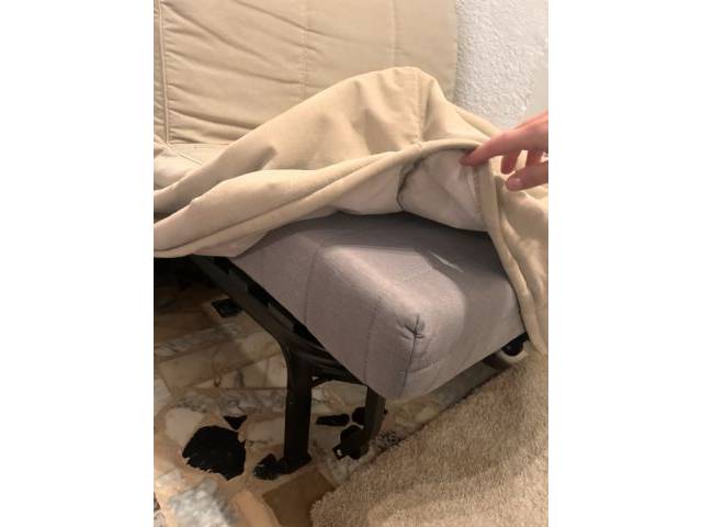 El sillón se ha usado muy poco y está en buen estado. La funda es beige y neutra, por lo que combina con muchos estilos de decoración. El mecanismo de apertura funciona perfectamente.