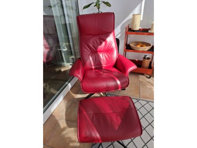Sillón Relax con reposapiés/cuero. Color : Chili , plegable y giratorio. ¡El sillón está en perfecto estado! Se vende por falta de espacio.