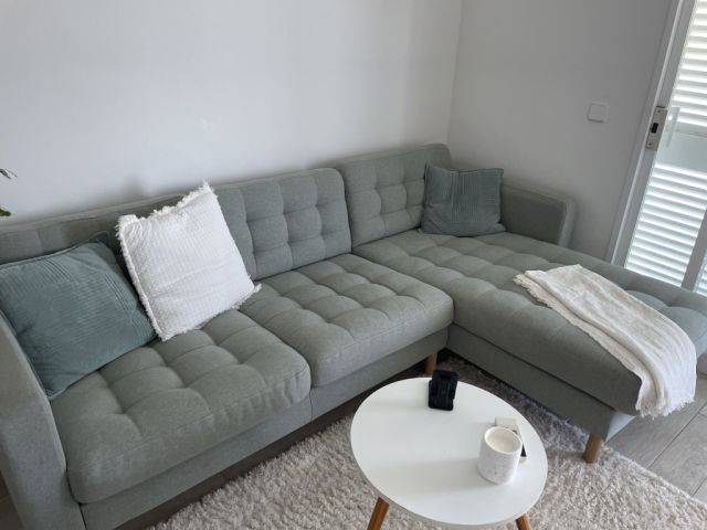 Ofrezco un sofá acogedor y bien conservado en venta. Está limpio, muy cómodo e ideal para el salón o la habitación de invitados. Color: verde claro No tiene daños, hogar de no fumadores.