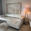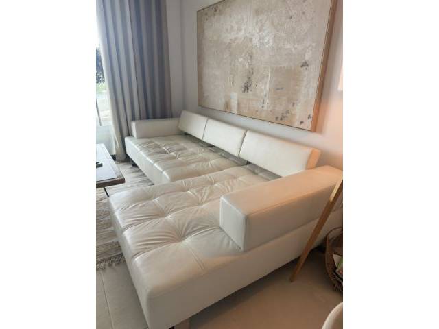 Vendo mi sofá moderno y muy bien cuidado, cuero auténtico blanco con efecto capitoné.