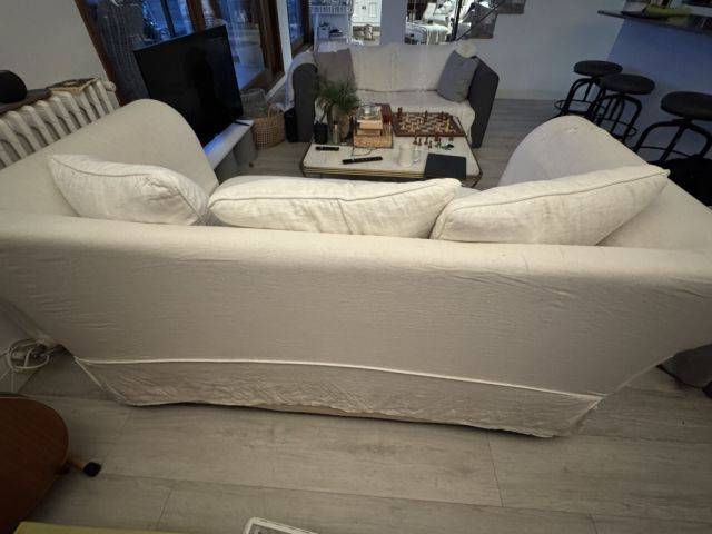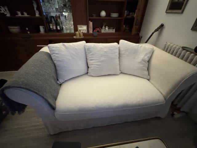 Sofá blanco de dos plazas con funda de lino – cuidado – recogida en persona