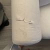 ➡️ En el reposabrazos izquierdo hay un desgarro en la funda de lino. Esto es visible, pero no afecta ni a la estabilidad ni a la comodidad al sentarse. Hasta ahora hemos cubierto esta zona con una pequeña manta decorativa – por eso apenas se nota.
