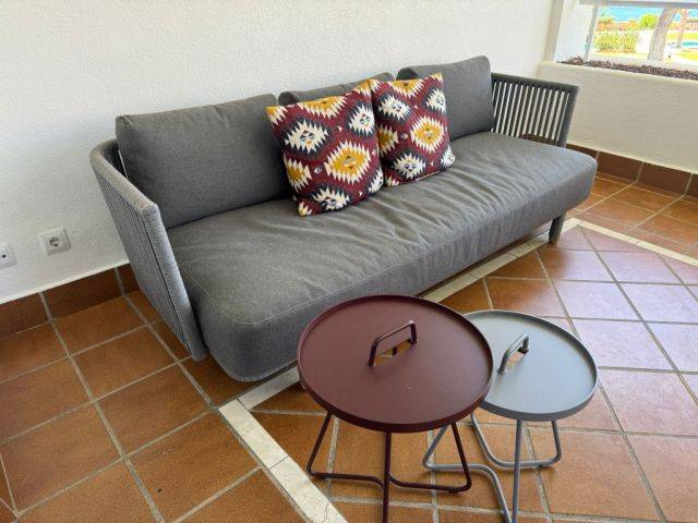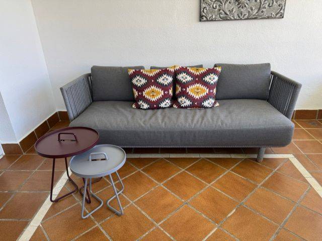 Dimensiones: 2,20 m de largo, 0,90 m de profundidad, 0,80 m de alto (con cojines)