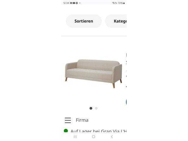 Hola, vendo un sofá nuevo de Ikea (Linanäs) todavía empaquetado originalmente en una caja. La foto es de Ikea. Ya no puedo cambiarlo. El precio original es de 299 y ahora por 199, no es negociable. Recogida en Paguera