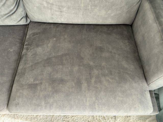 Se aprecia un pequeño daño (ver foto). Por lo demás, el sofá está en buen estado.
