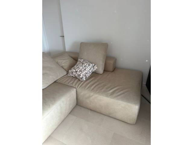 Vendo un sofá lounge moderno y de alta calidad de tres piezas en cuero genuino beige.