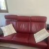 Vendo un sofá de cuero rojo de Stressless con reposapiés (con pequeña superficie de mesa) en Cala d‘Or. Sofá de 3 plazas con asientos reclinables y con una longitud de aprox. 200 cm. Precio 500 € (negociable).