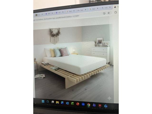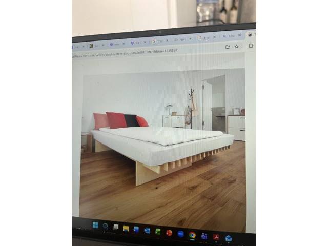 Cama sin metal — sistema innovador de ensamblaje. Marca Tojo, madera maciza de haya. Originalmente envasado, en venta. Dimensiones extendidas: 1,80 x 2,00 metros. No extendida: 1,00 x 2,00 metros.