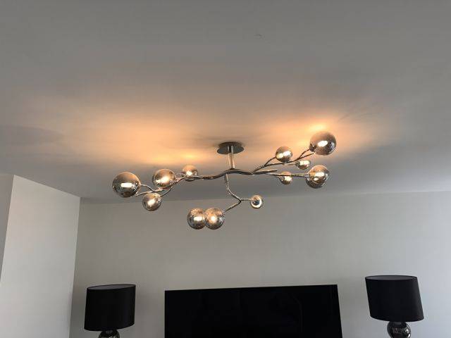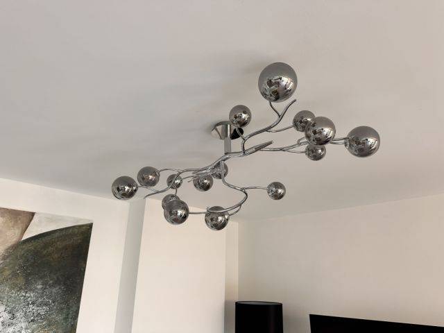 Vendo mi lámpara de techo de diseño de alta calidad en un moderno acabado cromado.
