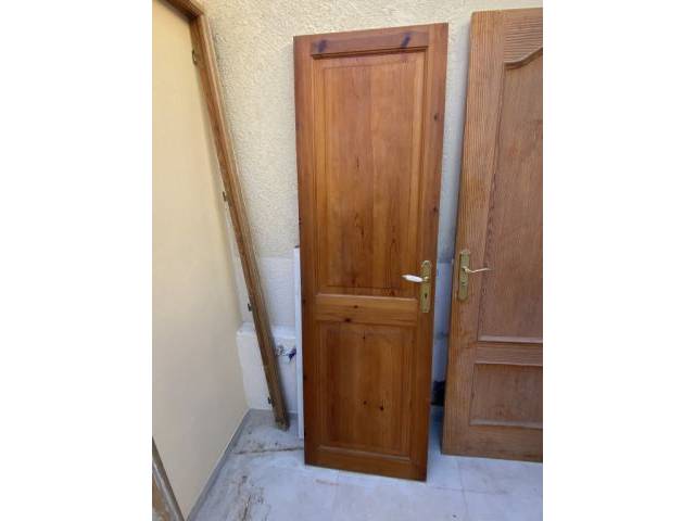 Se venden 3 puertas. Dos puertas macizas de madera, una de ellas con cristal y una puerta con chapa de madera. Precio por las tres juntas: 100 €.