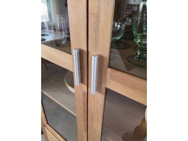 Vitrina parcialmente maciza de roble, muy bien conservada y cuidada, sin arañazos. Medidas: 100 x 190 x 45 cm. Solo recogida en Cala Murada.