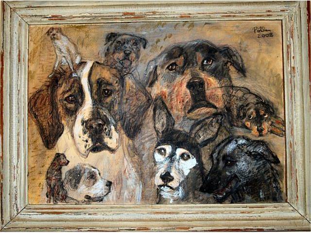 Acuarela, Cuadro: Dog Pack, enmarcado