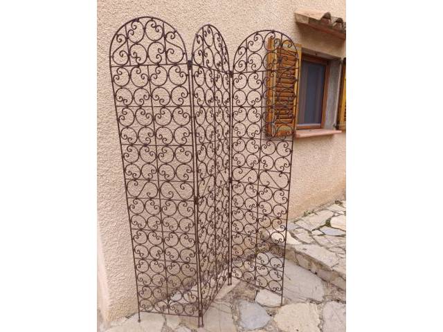 Vendo biombo de metal macizo con tres paneles plegables ... Altura aprox. 180 cm y, desplegado, aprox. 120 cm de ancho...muy decorativo...